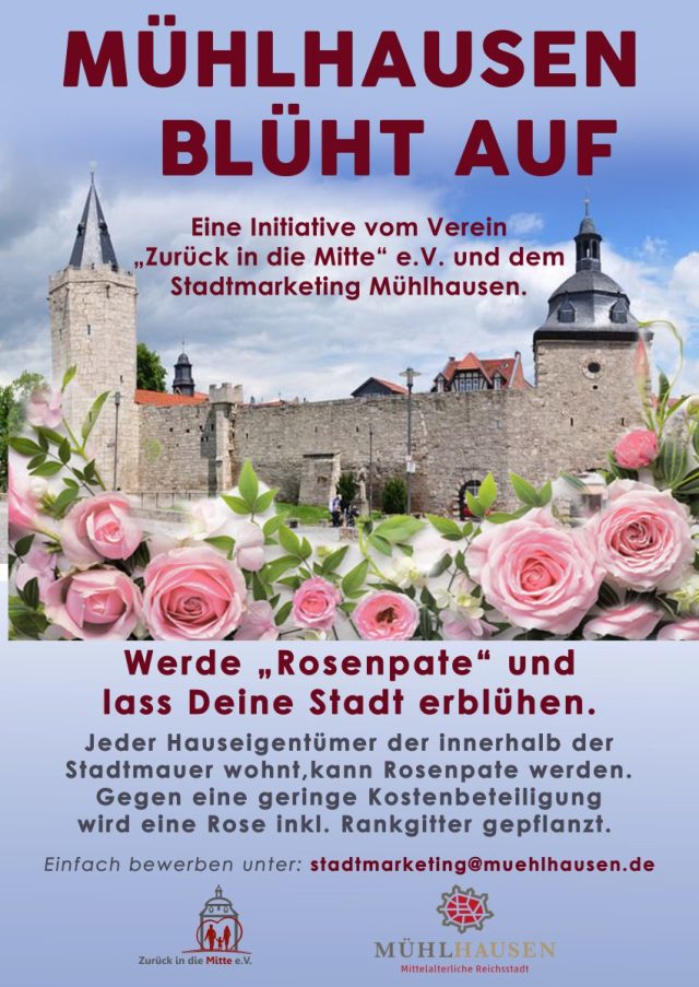 Der Verein „Zurück in die Mitte“ (ZiM) startet gemeinsam mit der Stadtverwaltung Mühlhausen in diesem Jahr erstmals eine Rosenpflanzaktion unter dem Motto: